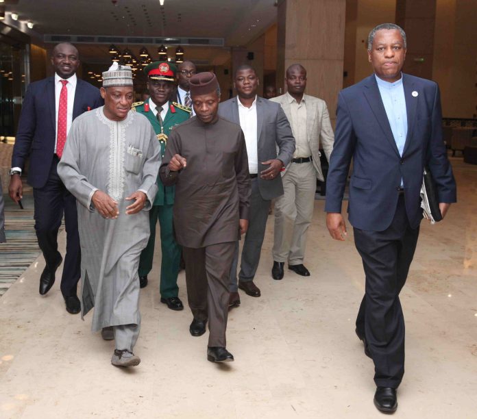 Prof. Osinbajo, is accompanied by Finance Minister Mrs. Kemi Adeosun and Ambassador Babagana Kingibe among other functionaries