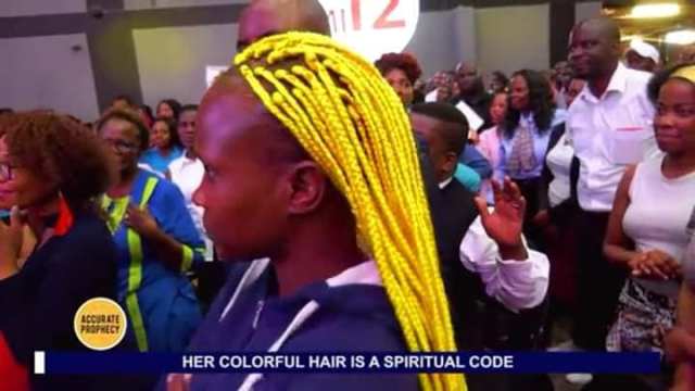 The lady was captured spotting a braided hairstyle with a yellow hair attachment, which made the her a center of attraction among the crowd.