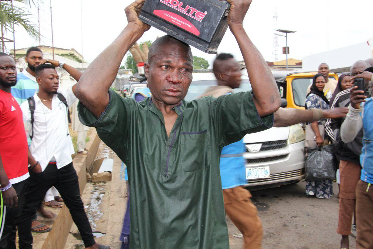 It was gathered that the suspect was caught while trying to escape after allegedly stealing the battery from a Toyota Camry car parked opposite Challenge area of Ilorin on Saturday, May 21.
