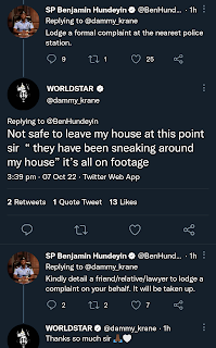Dammy Krane however noted that it is not safe to leave his house as the people after him have been sneaking around. He also noted that he has footage of them.